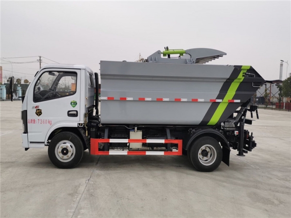該車型是我公司根據環衛市場需求開發的一種新型垃圾車,選用東風公司生產的二類汽車底盤。由垃圾箱、翻桶機構、舉升機構、刮板及滑板壓縮機構、液壓系統和電氣系統等部件組成。具有外形美觀、駕駛舒適、操縱方便、機動靈活、可靠性高、運營成本低、上料效率高等特點。適用于城市、鄉鎮的垃圾收集轉運,箱體采用船型斗結構,徹底解決了垃圾運輸過程中的污水滴漏等問題。