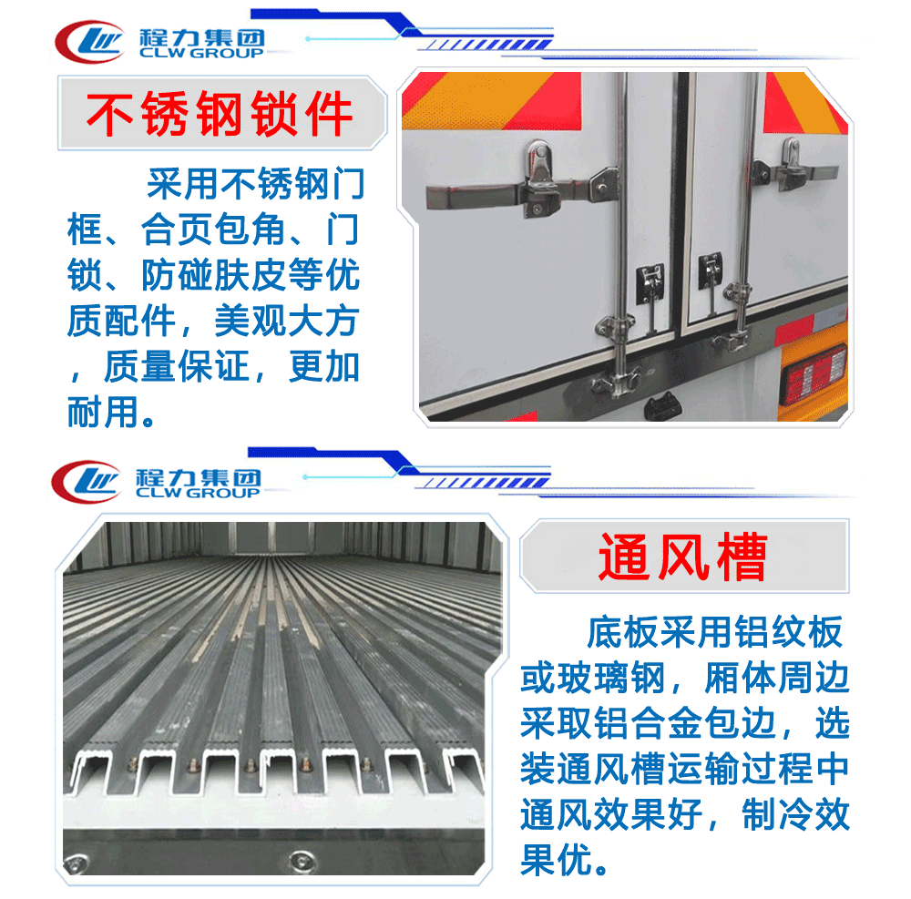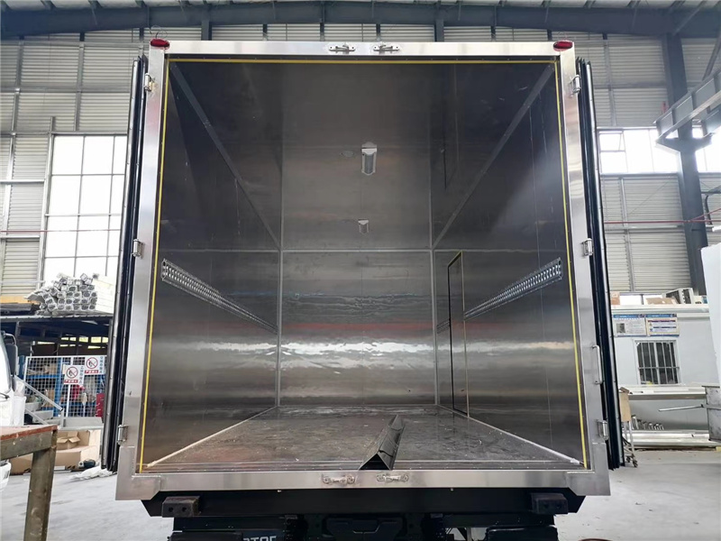 廂體配置:廂體板采用市面上最先進技術-負壓加熱抽真空技術,保溫性能達到國家A級標準廂體。內部尺寸為: 容積為 立方,廂體內外面料采用最新款納米玻璃鋼(不吸光、隔熱性好、硬度強、抗氧化)廂體厚度為8cm ,內襯骨架為防銹處理優質輕鋼型材鍍鋅管,保溫材料為無空隙填充聚氨酯發泡,廂體底部為鋁合金花紋板或選平面納米玻璃鋼,廂體采用鍍鋅不銹鋼包角,加厚型鋁合金包邊,后門框為不銹鋼,加厚型不銹鋼后門]合頁及鎖件,全車所有不銹鋼部位均使用食品級304不銹鋼制造,廂體內部采用ED照明燈及廂體示寬燈。