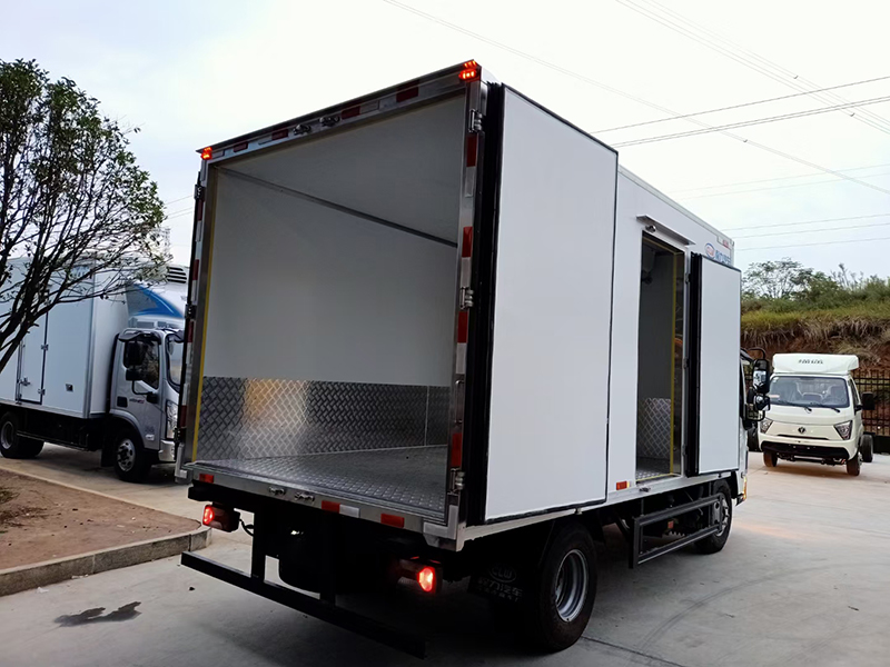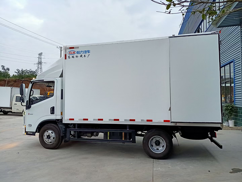廂體材質:貨箱尺寸4090x2080x2100(不超重),廂體內外采用玻璃鋼材質,中間8cm聚氨酯發泡保溫層,廂體底板材質采用花紋防滑鋁底板,配不銹鋼門鎖件,其余標配。選裝零下五度至零下十五度制冷機組。