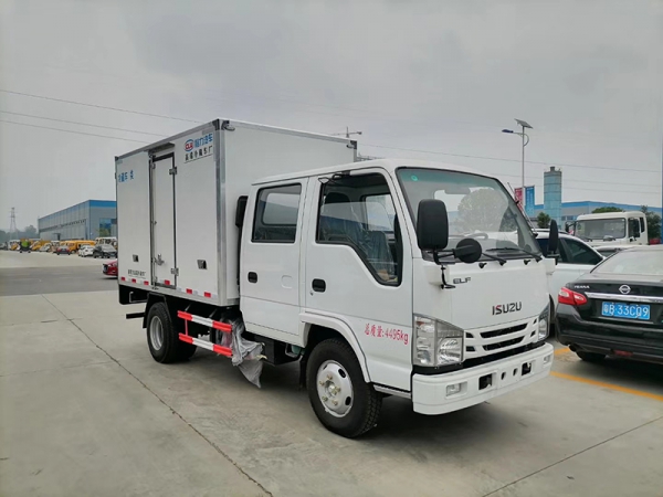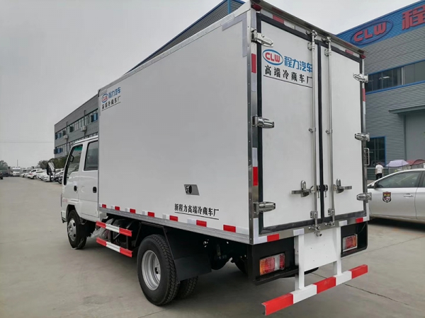 上裝配置:箱體采用內外玻璃鋼制作,中間聚氨酯8cm保溫板,后雙開門,底部鋁花紋板。鋁合金型材包邊,門鎖均為不銹鋼鎖件,前部排水孔。